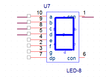 这几天在学习一点alegro 16.3,尝试着画个单片机最小系统,自己建立了一个单片机和8位数码管的原理图符号,画图的时候显示如下