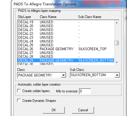 pads导入到allegro的时候 有个窗口是选择 pads和allegro对应的层的 一般是26 和 29 层 具体的不一定 默认情况下是这样的 在allegro里面的导入窗口选择DECAL的26和29层设置一下 就可以了