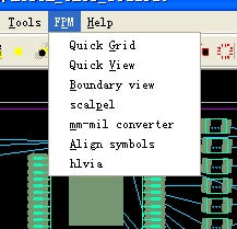 安装fpm0.8以后,灰自动在allegro添加一个小功能菜单. 其中quick grid/ mm-mil转换功能挺实用的.