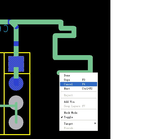 如图所示,想在走线时改变走线模式(45度/90度/圆弧)。但弹右键选 到toggle没有反应呢?(如有反应就可以设一个快捷键)只能点右边选择栏的走线模式吗?