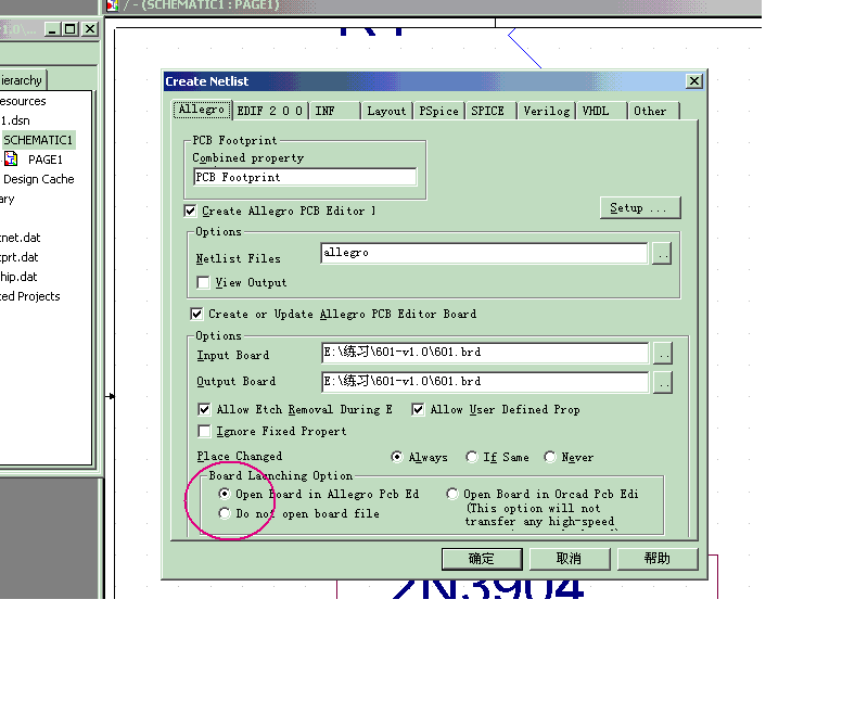 3.ORCAD和ALLEGRO已经建立好连接,如何在ORCAD中修改原理图后向ALLEGRO传送网络表时不打开新的ALLEGRO窗口,而是和原来打开的窗口进行连接,我在ORCAD中的设置见下图: