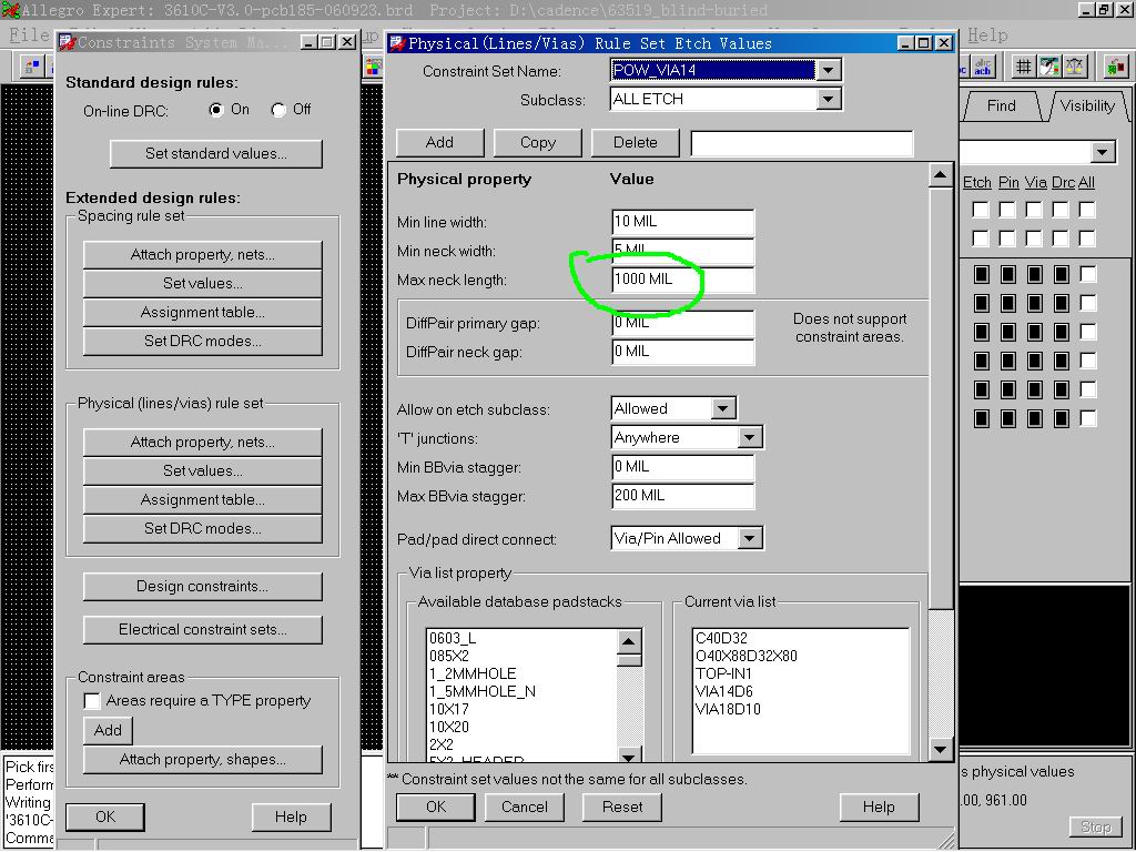 这个在Allegro帮助文件里面寻找就行了,就是走线瓶颈长度,具体有图可以参考