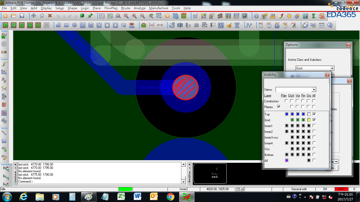詢問VIA問題?請問關於VIA不是都先鑽孔之後在孔壁的內測度同嗎?但是我看ALLERGO的檔案隨便一個VIA,紅色斜線區是鑽孔的區域對吧?然後黃色斜線區是REGULATOR PAD用在TOP層連接的,這樣請問VIA的孔壁內側度同的區域怎麼看呢?