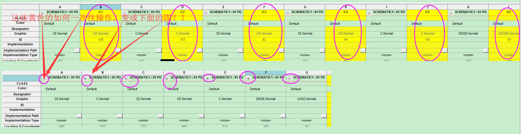 orcad元件属性,黄色的属性如何一次性合并?