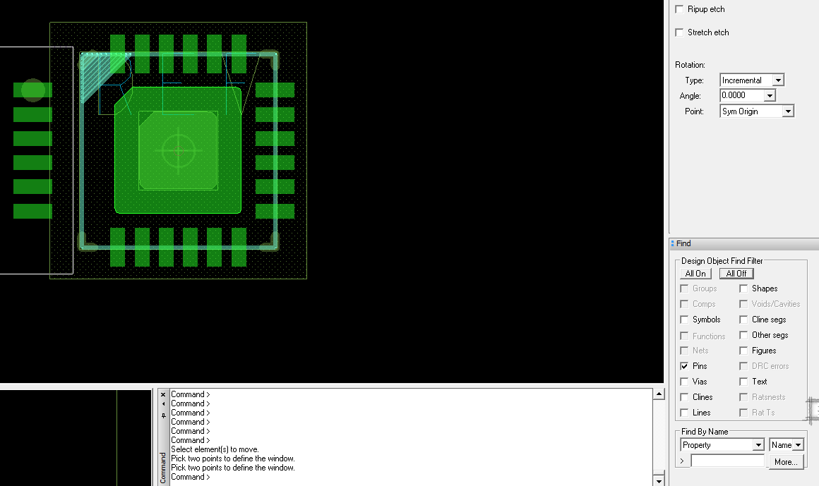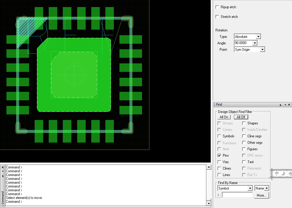 用移动命令选中一组管脚后,在命令栏执行ix xxx即可在左右方向上偏移,同理,iy xxx即可在上下方向上偏移。