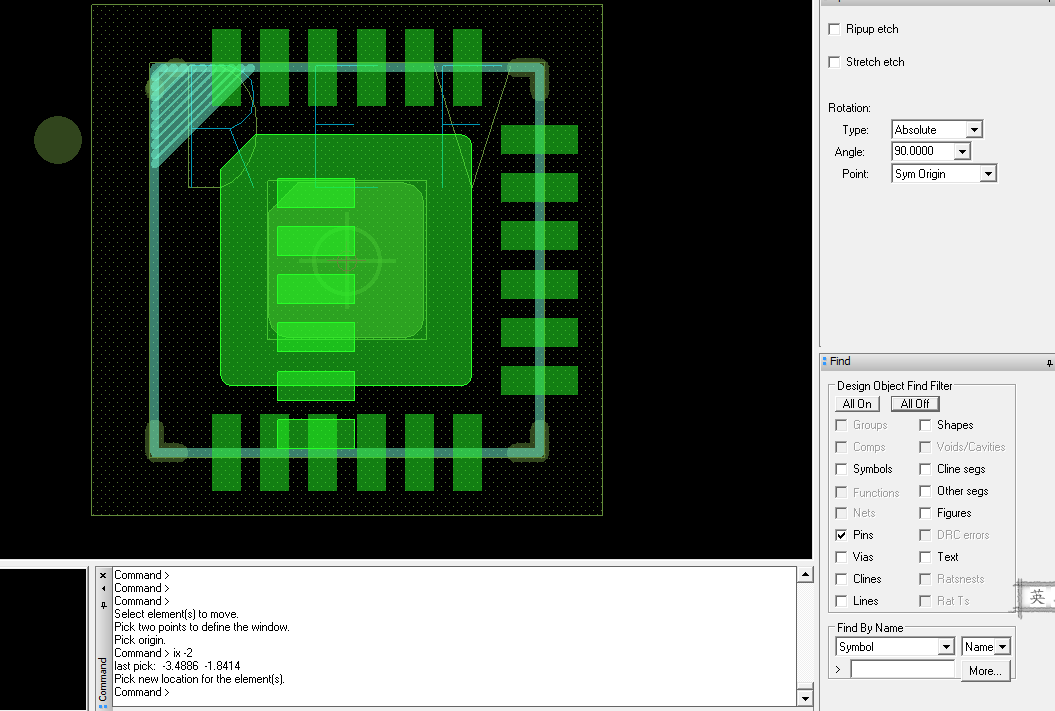 移动命令可以框选管脚,然后用ix/iy命令进行偏移。