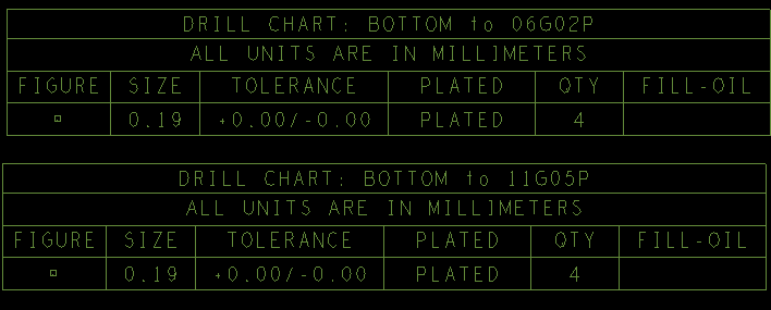 你的意思是说如果分别出 Bottom to 06G02P 和 Bottom to 11G05P 的 drill chart,QTY 一栏是对的,但是同时出的时候,QTY 的值都是不对的了?那你就分别检查一下 Ncbackdrill 层的表格与钻孔是不是对的。请教一下,是不是因为我用的 Allegro 比较低级(performance L,不具有 high-speed 选项),因此生成的背钻表格没有你截图中的 FILL-OIL 列呢?还是因为我的 Template file 少了什么?