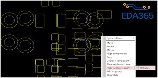 使用方法:同样执行Setup-->ApplicationMode-->Placement Edit并框选相同但未完成布局布线的模块,然后右键选择Place replicate apply-->Browse调用之前生成的mmd文件即可。