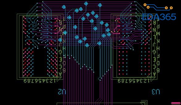 你的过孔没打在两个颗粒中间,左边右边差距大,不好等可能,建议打漂亮,居中.等长参考http://www.eda365.com/forum.php? ... 4&highlight=T%B5%E3