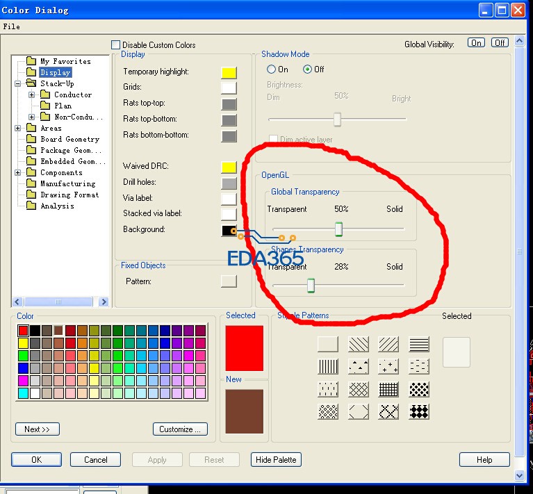 然后,在Setup->User Preferences->Display->Shape_fill-里面,勾选no_shape_fill。即可。