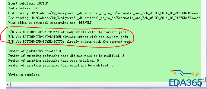 2. 考虑到上面的情况可能是名称的原因,于是我用SETUP->VIA DEFINE ->BB AUTODIFNE 创建过孔,并选择顶层是BOTTOM,地层是GND,命名是BOTTOM-GND,如图1所示,最后创建出来的盲埋孔还是没有BOTTOM-GND的。如图2所示,不知道是什么原因。