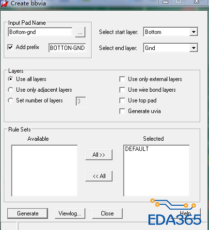 3. 如果我想创建一个穿过4层的通孔,但是命名为BOTTOM-GND,这样方便拉线到内层的时候可以直接弹出,不需要在选择VIA,不知道该如何做?