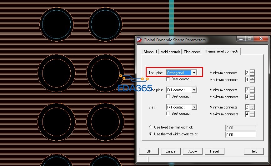 如下图所示,铜皮与DIP PIN的连接属性是 Orthogonal ,Apply后铜皮与DIP PIN闪避开了但BRD中却没有十字连接,这是什么问题啊?
