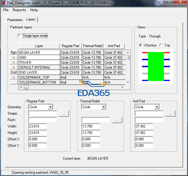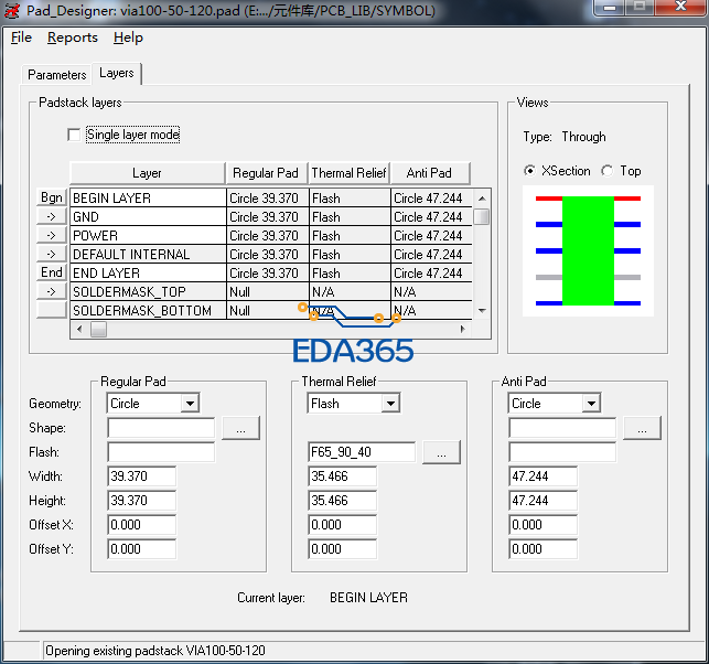 第二,如果你有特殊需要,每个层所使用的焊盘都不一样,那么显然需要各个层分别定义焊盘,而且层的名字应该和你的design的层叠设置要一致。如果不一致会怎样?呵呵,我也不知道,你可以自己试下,看软件会报错不?