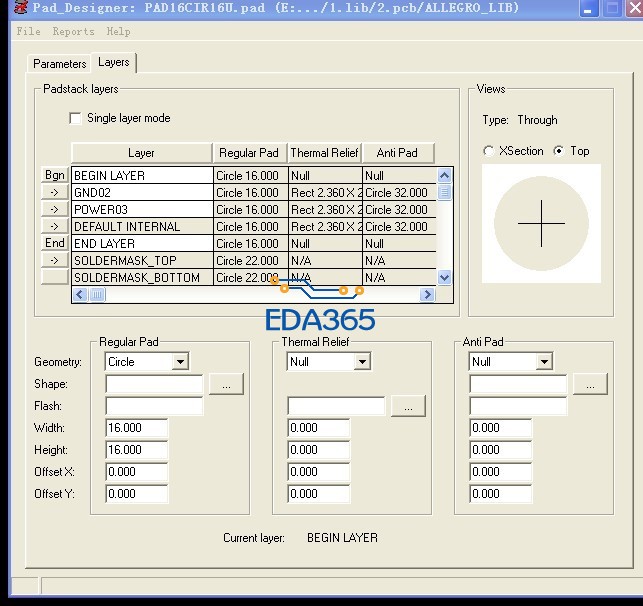 顶层和底层的Thermal Relief,Anti pad不能为null