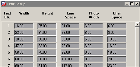 TEXT SETUP 裡的 CHAR SPACE