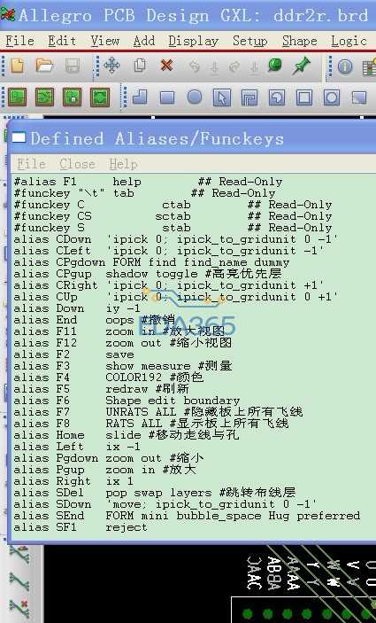 在使用Allegro时,遇到一个菜单不能关闭.此菜单为efined Aliases/Funckeys.截图如下: