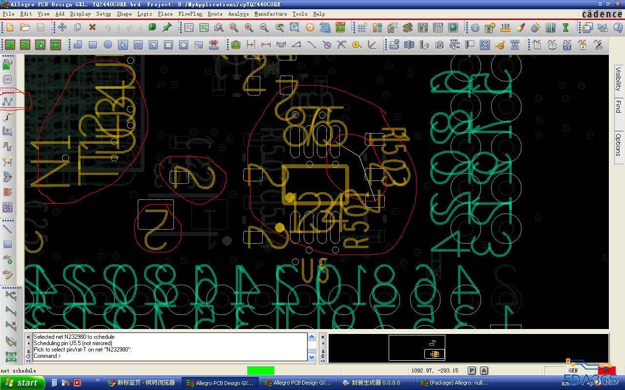 在Allegro中布线时,调用NET Shedule,想看一下网络连接,但却出现了如图所示的情形:由于引脚号的存在,看不清楚焊盘,这个问题怎么解决?请教各位高手!谢谢