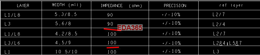 不能同时满足差分阻抗100欧姆和特性阻抗50欧姆喔,因为如果满足100欧姆,其特性阻抗必定大于50欧姆!