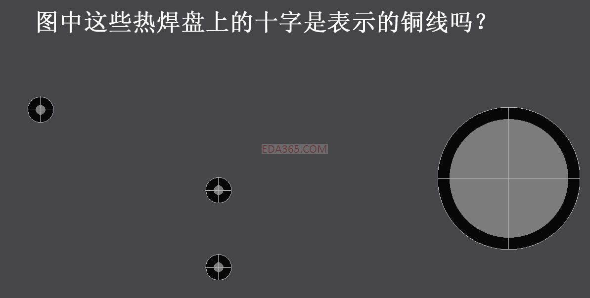 图片如下,是接地的,那这种热焊盘上的十字应该就是铜吧?如果是铜线的话那是不是因为我没给这个过孔设置热焊盘,所以软件使用了默认的热焊盘?