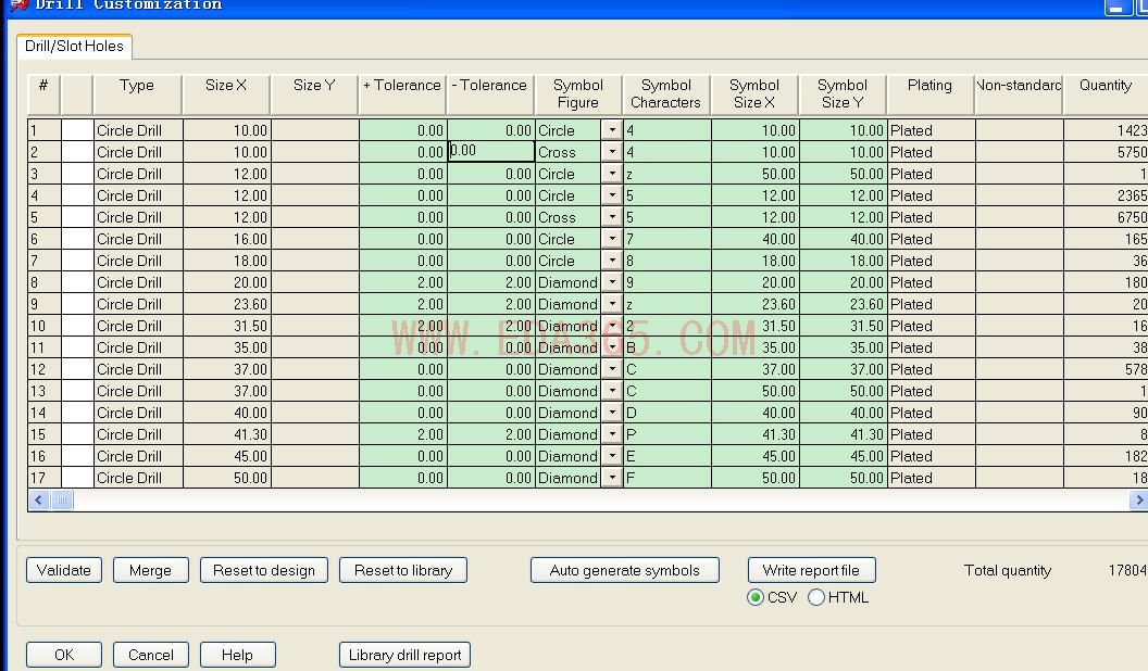 执行Manufacture -> Drill Customization进行钻孔误差及符号设定。