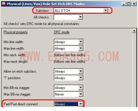 有些板子就是via打在上面也不会出现DRC的,想找出打在焊盘上的VIA的方法如下图,按照这样设置过后在VIA打在焊盘的地方就会出现DRC。
