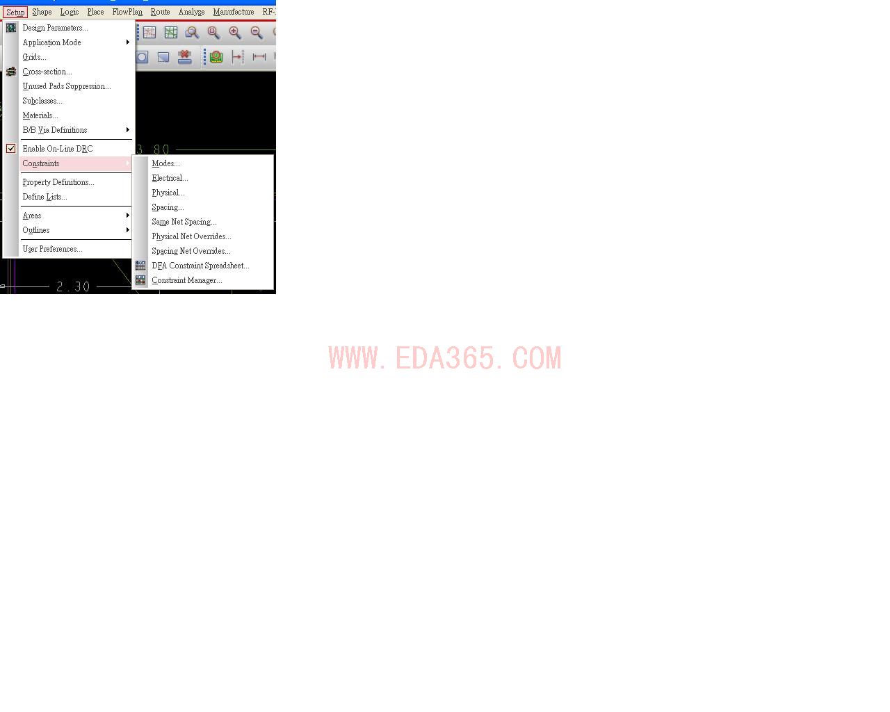 在setup\constratis 裡設定physical 是設定線寬,Spacing是設定間距..