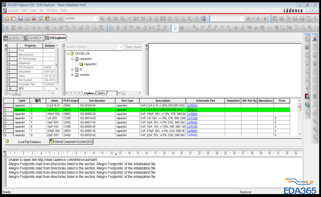在CIS Explorer中可以预览元件符号,但是不能预览PCB封装。我用的microsoft access2003和Cadence16.6