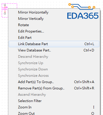 我在電路圖上用 place database part 叫出的元件(EC6 有連結到數據庫)