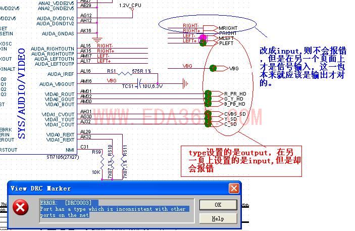 能配对的PORT,type类型应该是一个输出,另一个输入才对,但是DRC报错,