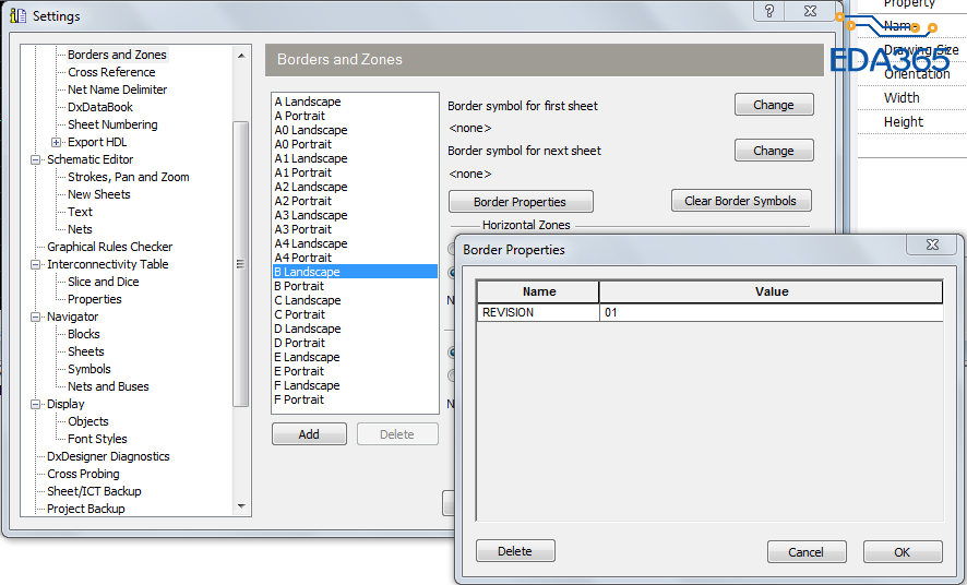 setup>settings>project>borders and zones>Border Properties