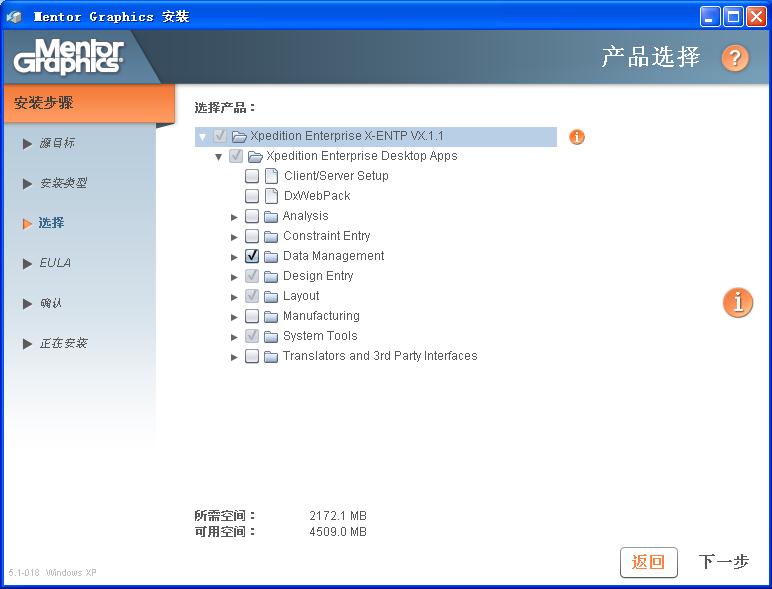 在随后弹出的窗口中选择要安装的软件模块,如果这时候license已经设置好,那么安装程序会自动勾选已被授权的功能模块。如果暂时还没有license,也可以根据需要进行勾选,一般就是原理图、布局布线和建库几个模块。