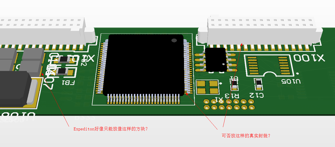 如下图是AD中的3D显示,Expedition如果设置了元件的尺寸和高度,也可以显示简陋的灰色3D, 但是我想要真实的3D模型。在Library Manager和Cell Editor里面没找到入口,请问如何实现?还是说Expedition没有此功能?
