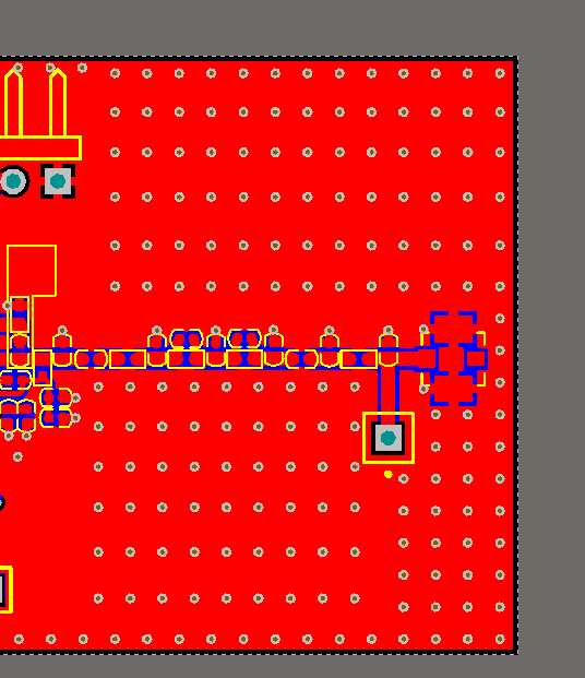 射频信号这样打不好,显得很随意 除了楼上说的过孔间距为,射频线边沿没有过孔 两侧的过孔要对称放好些,