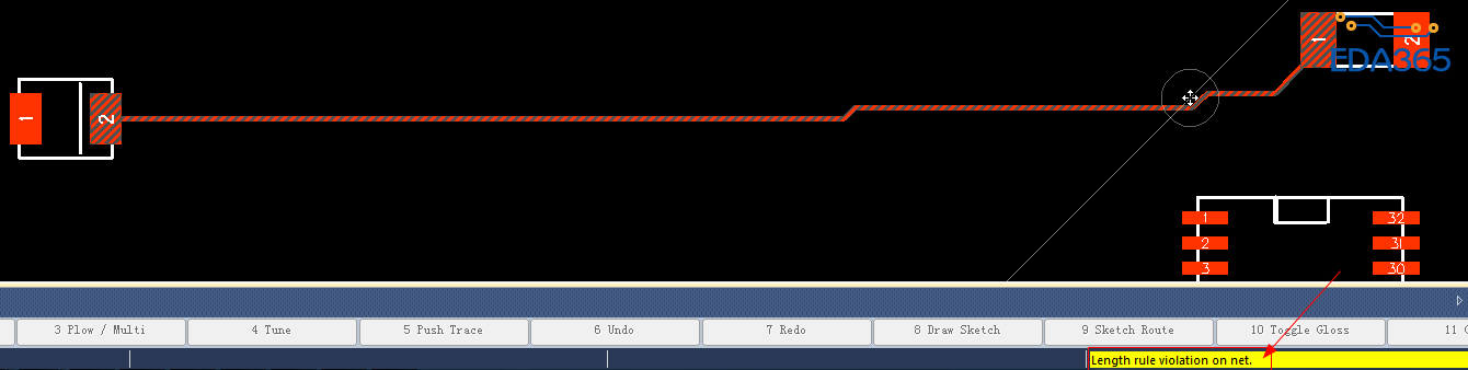 板上有电气约束规则,当布线长度超过约束规则时不让继续布线或推挤线...
