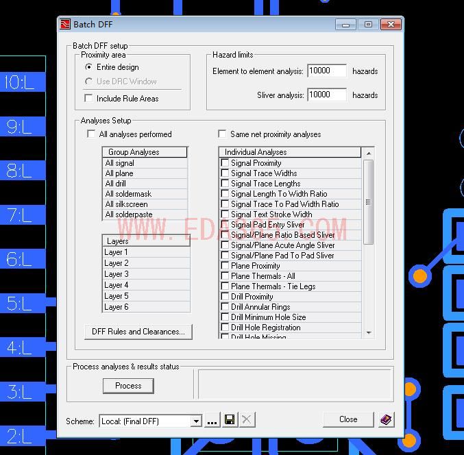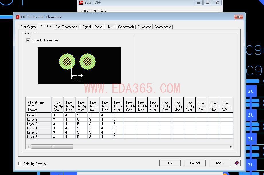 这个就是你要的!可以检测你在设计中的参数是否违反规则,这个检测一般是可制造性检测,有时可以忽略的