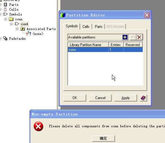 但是如果你的分区名称很特别,比如con、db之类的应该属于保留字范围内的就是你把元件都删了也删除不了分区。如果那样的话,我劝你还是新建一个中心库,把好用的元件都导过去。原来的是有问题的,就算你现在不用这个分区,画sch时也会出问题。所以就不要了吧。