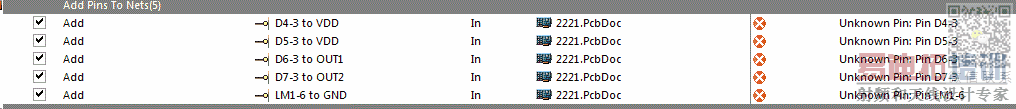 比方: 你的線路圖零件是對映到SOT-23 是3支腳, 而你的PCB實體零件只兩支腳的二極體.