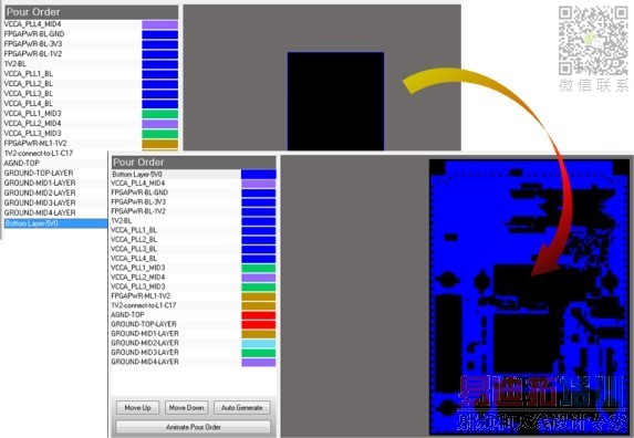 Polygon Pour Manager使得你可以快速的根据一个已有的polygon pour或者根据板的外框,生成一个新的polygon pour