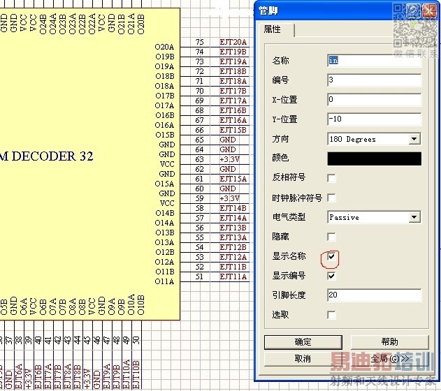 绘制原理图元件,放置管脚时选中《显示名称》,如已画好可以全局编辑,不必逐一改。