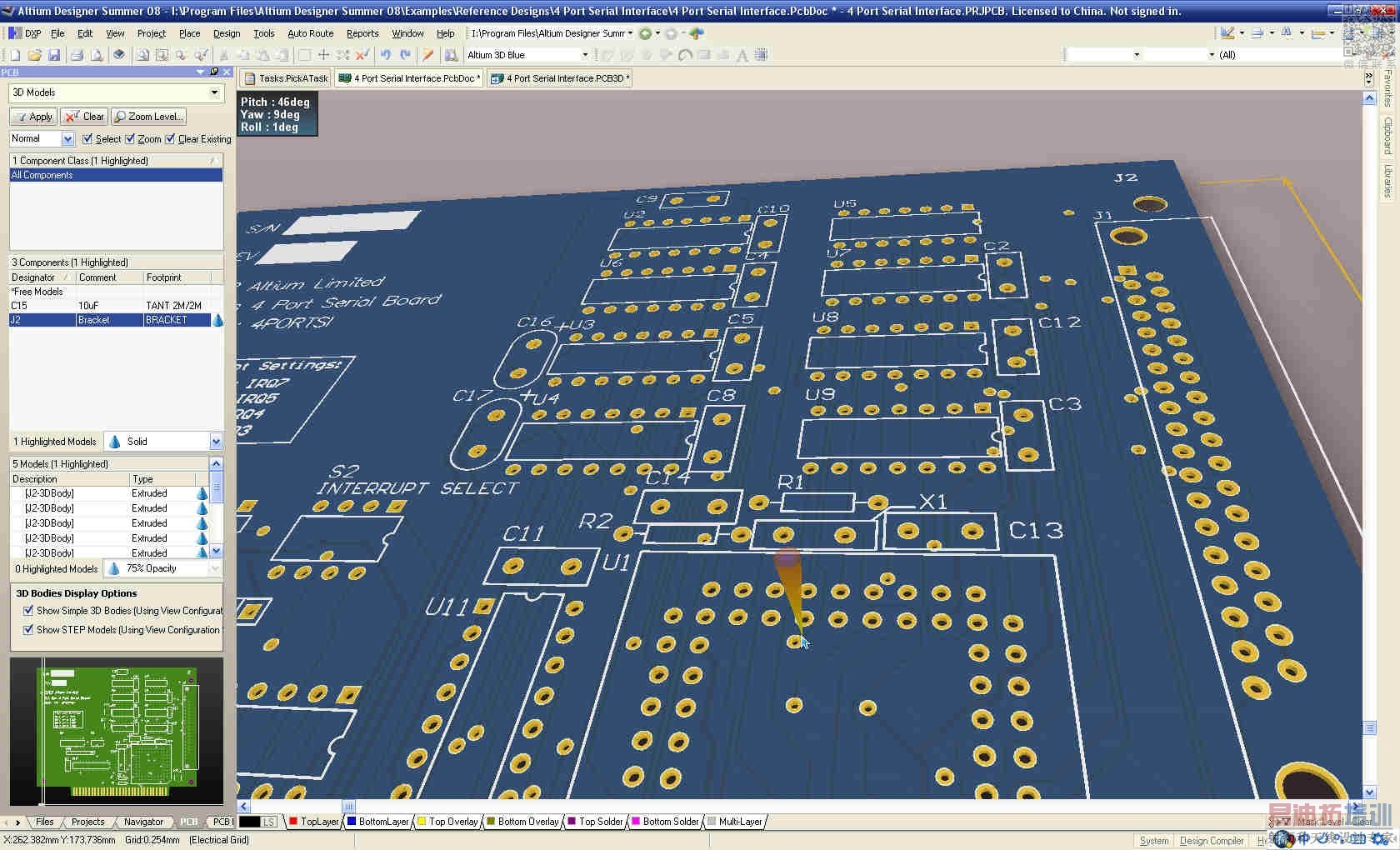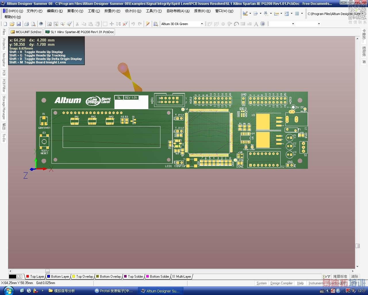 我安了08,但是看不到3d效果,只是能看到3d的焊盘,而且不能三维旋转。如下图