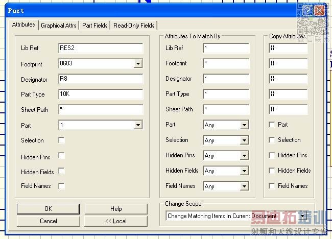 不好意思,我看错了,我认为是PCB文档。现在正式答复你,以你发的图为参考。在左边一栏FOOTPRINT内填写0603,在右边一栏(Copy Attribute)的第二项内填写0603,在中间栏(Attributes To Match By)的Designator 内填写R*(要加R后的符号),后点OK键就可以了。
