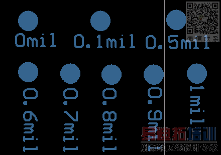 当你在任何一个层放置一个圆(P+U),圆的半径为0mil-0.7mil,不管你圆的线宽多大,为什么就不能打印出来,而当半径大于0.8mil的时候就能打印出来呢?请看下面的图,图中数字是半径的值:
