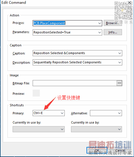 具体步骤:打开Tools\Component Placement\Reposition Selected Components,把鼠标悬停在该命令上,然后按ctrl+鼠标左键,这时会弹出命令设置窗口,在这个窗口里头选择自己期望的快捷键就ok了。