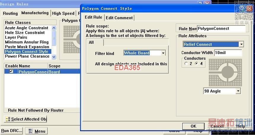在操作界面design-rules 设置下面选项,铺铜时就是十字连接了