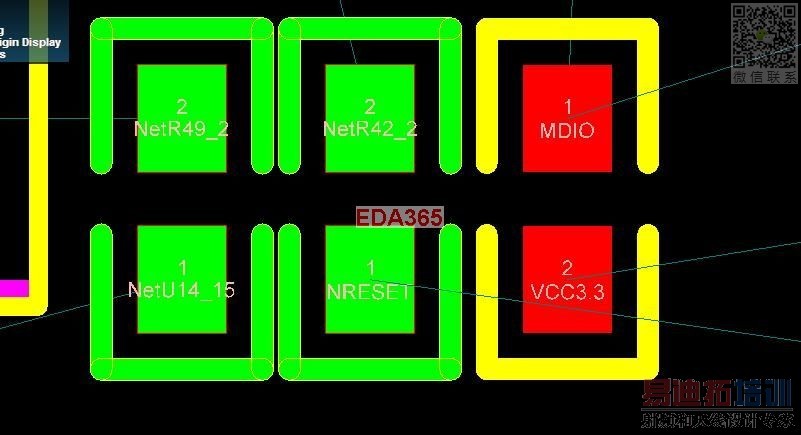 。图片如下。如果挨得过近。就会有绿色的警告。请问在AD中如何设定警告的最小距离呢?谢谢各位。前提是不能勾掉Online DRC选项。