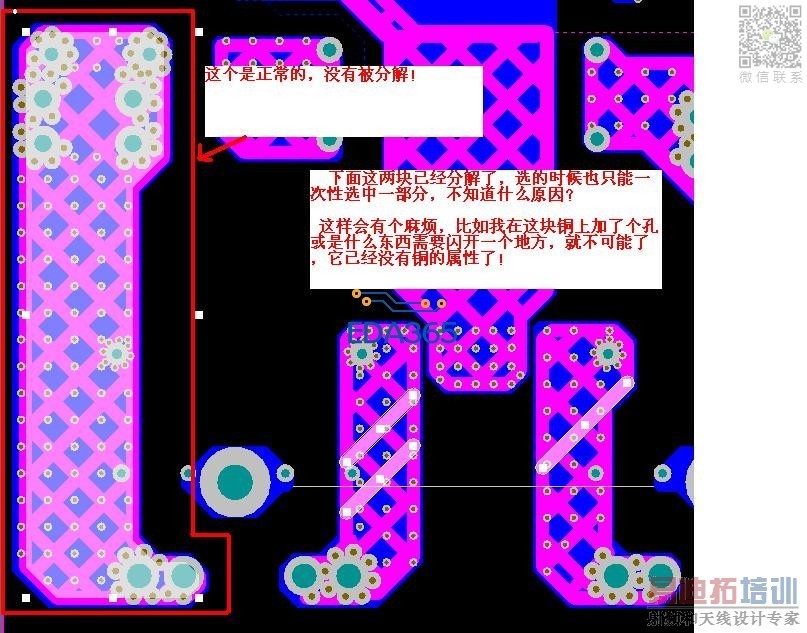 我文字描述下:我本来是画的是一整块的活铜可以进行闪避(比如铜块中有不同网络它会自己闪开),但是一段时间后,它不再是一整块铜了,成了一条条的线,每次选择只能选中其中一条线,再也没活铜的属性了,如果我要再改它的形状或是让它再闪避其它网络我得删掉重新画。