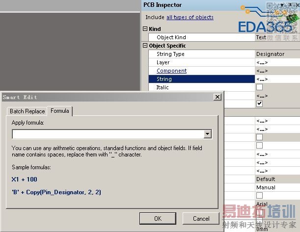 现在整体选择了器件标号,进入下图所示的Smart Edit界面,但是下面的Formula应该如何填写呢?搞不懂他的格式规则,试了一些都没有达到效果。