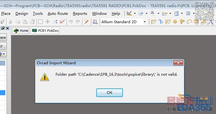 如上图,以前装有Cadence 16.3,后来出了点小问题就卸载了。现在在AD9里面使用导入向导的时候老是提醒这个,烦透了。这个问题该如何解决?