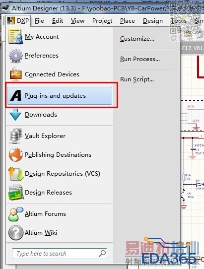 点击左上角的“DXP”,在下拉菜单中选择“Plug-ins and updates”,然后在打开的插件管理页中点击“Importers and Exporters”,在打开的插件里选择有问题的插件,右上方有卸载/安装。把有问题的卸载后再安装看看有没有解决。